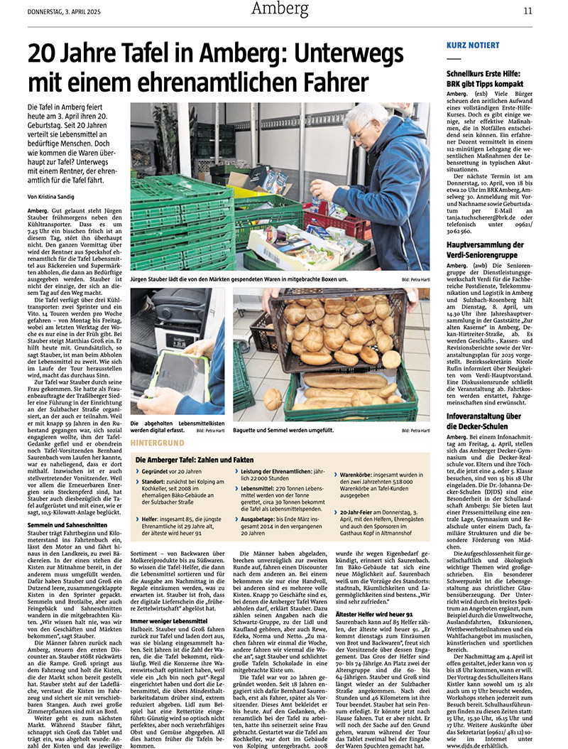 20 Jahre Tafel in Amberg: Unterwegs mit einem ehrenamtlichen Fahrer